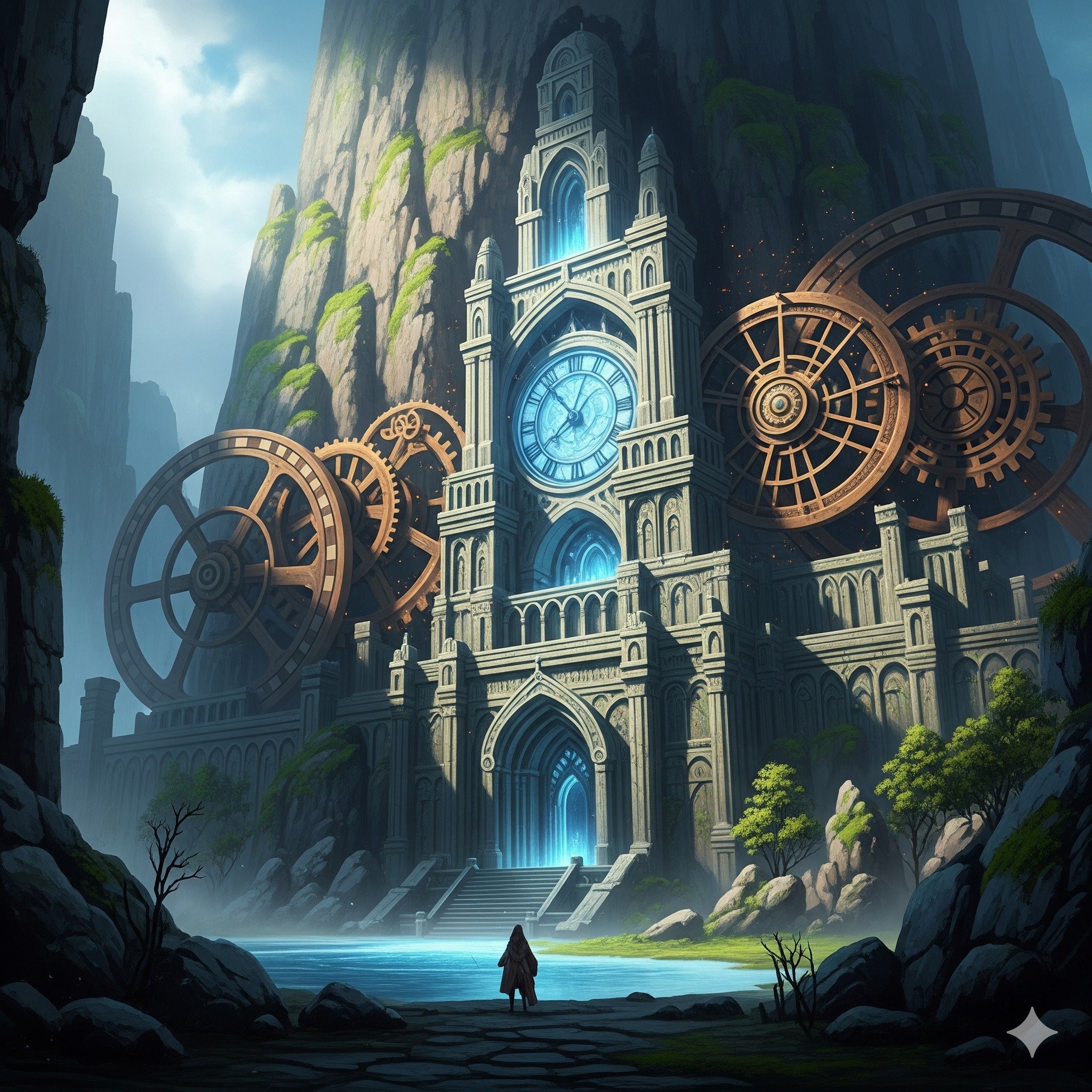 Eldermia temple of time, ancient stone architecture, temporal energy vortexes,